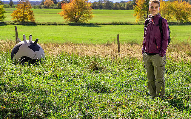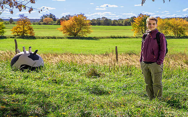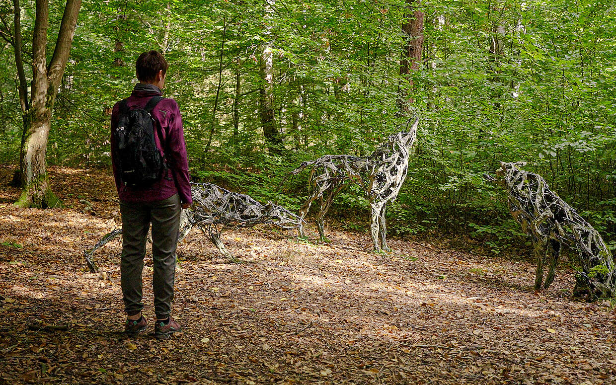 Mitten im Wald drei hölzerne Wölfe, riesige Kuheuter am Wegesrand und fünf geheimnisvolle, rostige Kuben – umgeben von Natur: Auf dem Kunstwanderweg entdeckt Julia Ryll zwischen Bad Belzig und Wiesenburg immer wieder Unerwartetes. Der Internationale Kunstwanderweg im Hohen Fläming/Landkreis Potsdam-Mittelmark ist für sie weit mehr als ein Ausflugsziel. Es ist ihre Lieblingsroute voller Stille und Überraschungen, die ihr Gelassenheit und neue Perspektiven schenkt. Zwischen weiten Panoramen und spannenden Kunstobjekten findet sie ihre ganz persönliche Freiheit.