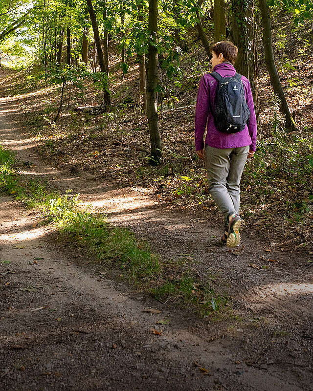 Auf dem Küchentisch von Julia Ryll liegen alle wichtigen Wanderbegleiter für heute schon bereit. Die zweifache Mama verstaut Banane, Müsliriegel, eine Wasserflasche sowie Powerbank und Handy in ihrem Wanderrucksack. Ziemlich leichtes Gepäck für eine 16-Kilometer-Tour auf dem Internationalen Kunstwanderweg durch den Hohen Fläming. Das reicht ihr, denn sie wandert immer allein. Während ihre Familie noch schläft, schnürt sie die Wanderschuhe fest zu und läuft in der morgendlichen Sommerfrische zum Bahnhof in Brück. Sie nimmt den RE 7 bis nach Bad Belzig, überquert die Eisenbahnbrücke mit Blick auf die Altstadt und biegt auf die Südroute ab. Ihr heutiges Ziel: den Kopf freilaufen, abschalten – und bei einem warmen Kaffee in Wiesenburg langsam in den Alltag zurückkehren.