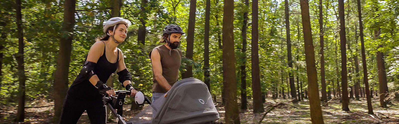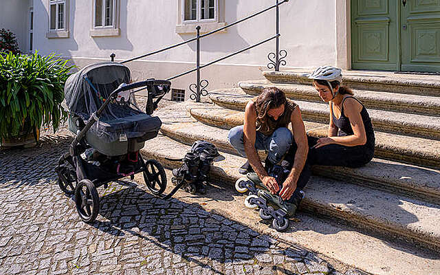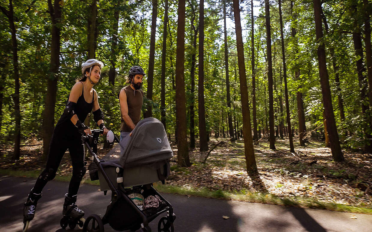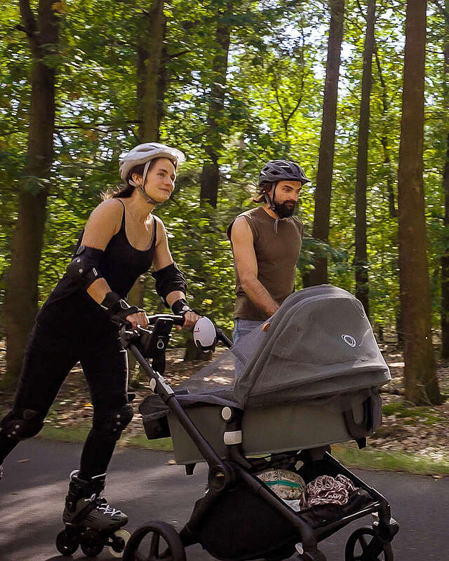 Für Luisa und Lee-Roy ist die Flaeming-Skate weitaus mehr als eine perfekt asphaltierte Skate- und Radstrecke. Sie ist ihr Tor zu kleinen Auszeiten, ihre Brücke zu Kultur und kreativem Austausch, ihre Direktverbindung zu Familie und Freunden. Seit vier Jahren sind sie, so sagen sie selbst „gestrandet in Reinsdorf“ und haben am Rundkurs 6 ihren zukünftigen Lebensmittelpunkt gefunden. In diesem Sommer erwartete sie eine Premiere: die erste gemeinsame Tour mit Baby Lucy im Kinderwagen auf der Strecke.