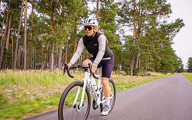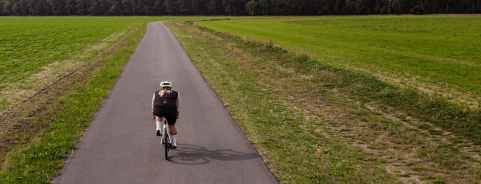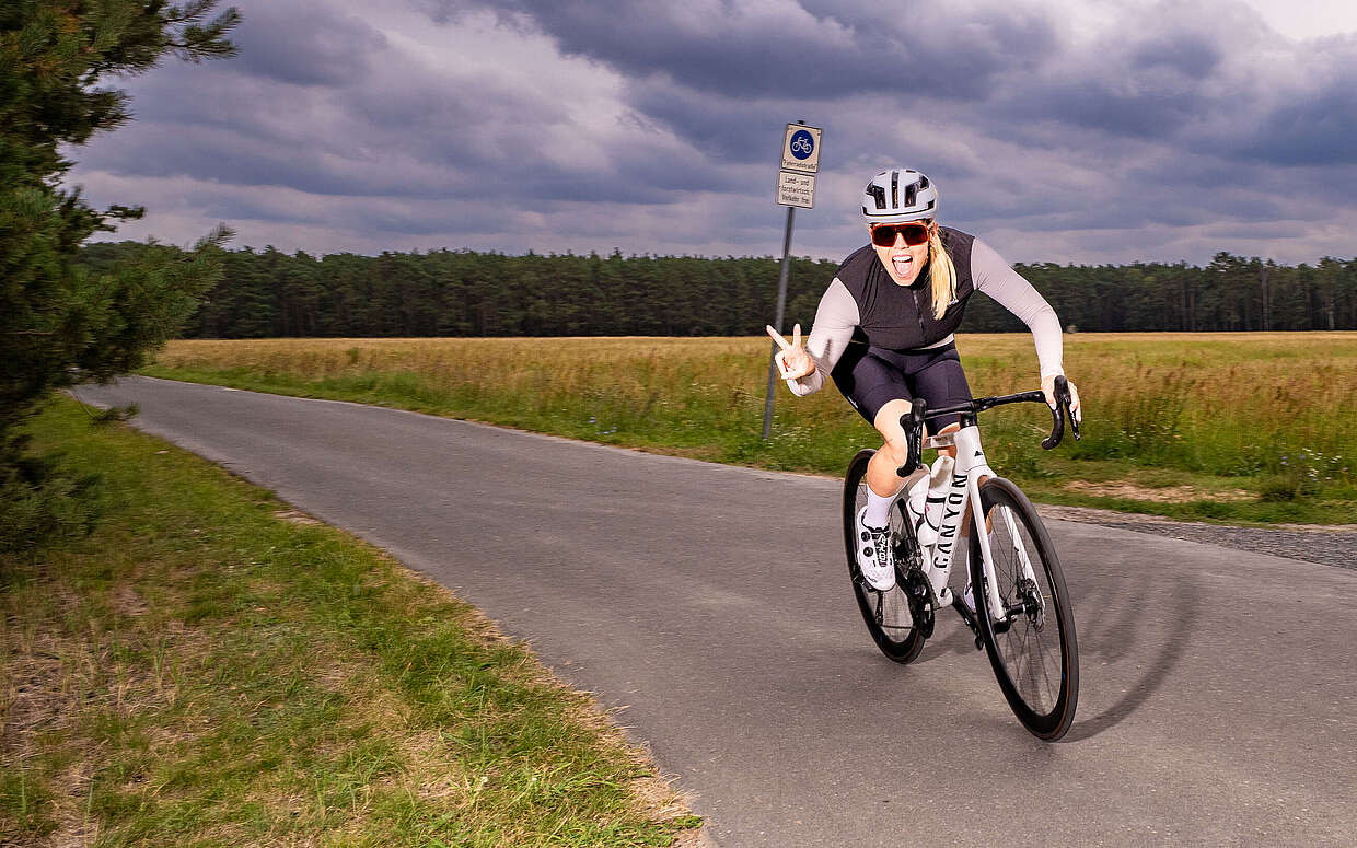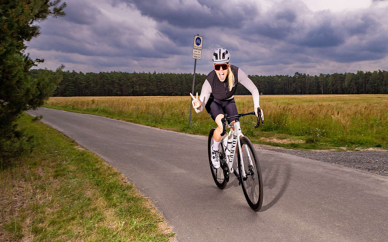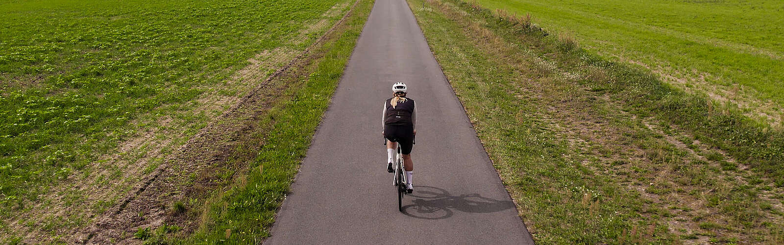 5:40 Uhr in Ottmannsdorf im Landkreis Wittenberg, 17 Kilometer südlich der Flaeming-Skate. Ein entschlossenes Piepen signalisiert: Der Fahrradcomputer ist startklar. Im nächsten Moment rasten die Radschuhe mit einem lauten Klicken in den Pedalen ein, Reifen rollen an. Als Natalie Ehrlich ihren Tag beginnt, ist die Welt noch ganz leise. Nur Vogelgezwitscher, das Surren des Freilaufs und der sich hörbar steigernde Atem der 39-jährigen Triatlethin formen die Tonkulisse bis zur Flaeming-Skate im Landkreis Teltow-Fläming. Vor der Geschäftsführerin einer Wittenberger Spedition liegen heute etwa 75 Kilometer Raddistanz, ein ganzer Arbeitstag und nach Feierabend ein Intervalllauf im Hohen Fläming im Landkreis Potsdam-Mittelmark.