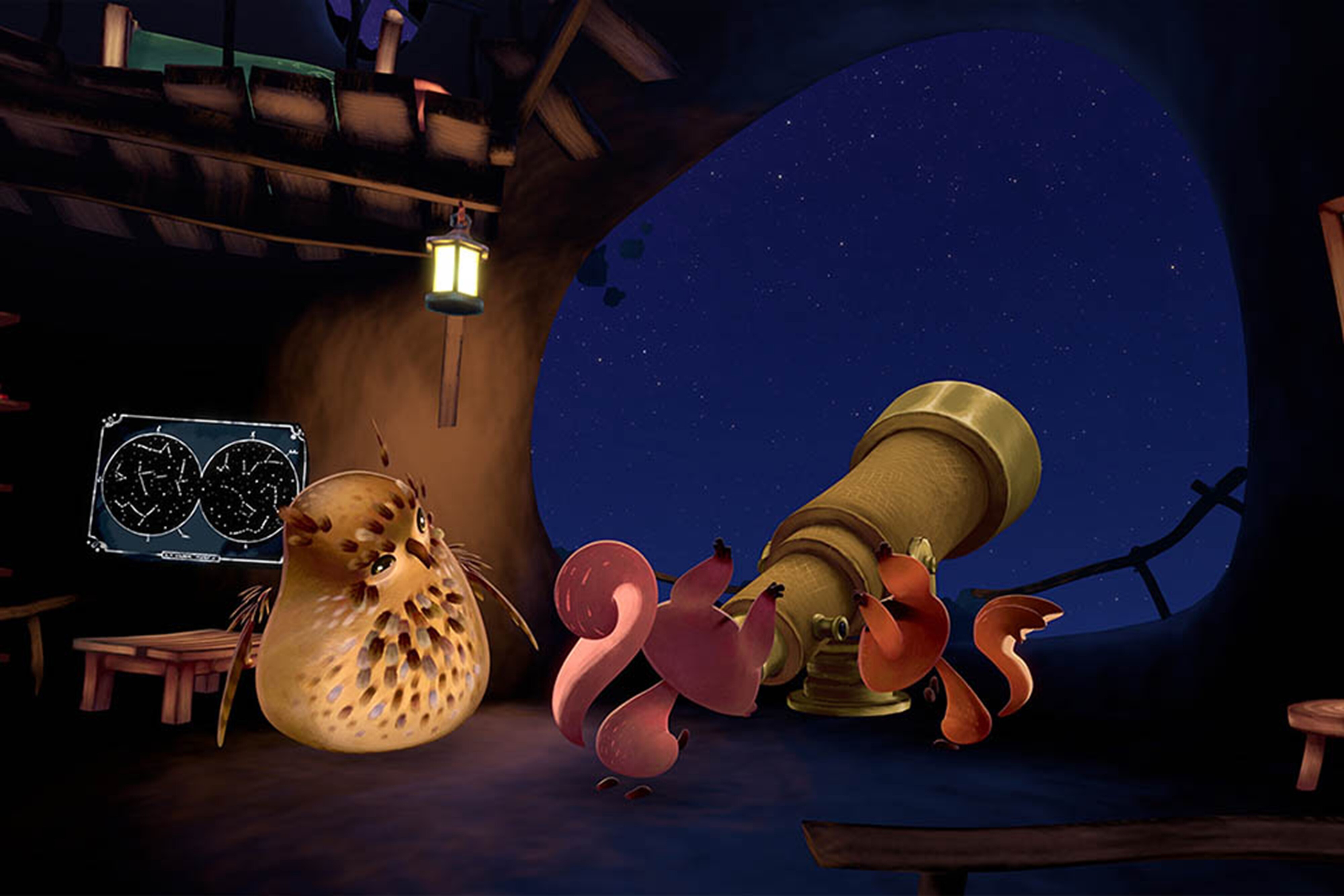 Die beiden Eichhörnchen Nino und Lilli lieben Haselnüsse über alles! Vielleicht gibt es im Weltraum einen Planeten, auf dem sogar Super-Haselnüsse wachsen? Begleitet die beiden auf ihrer Suche nach diesem geheimnisvollen Ort! Fulldome Show ab 6 Jahre